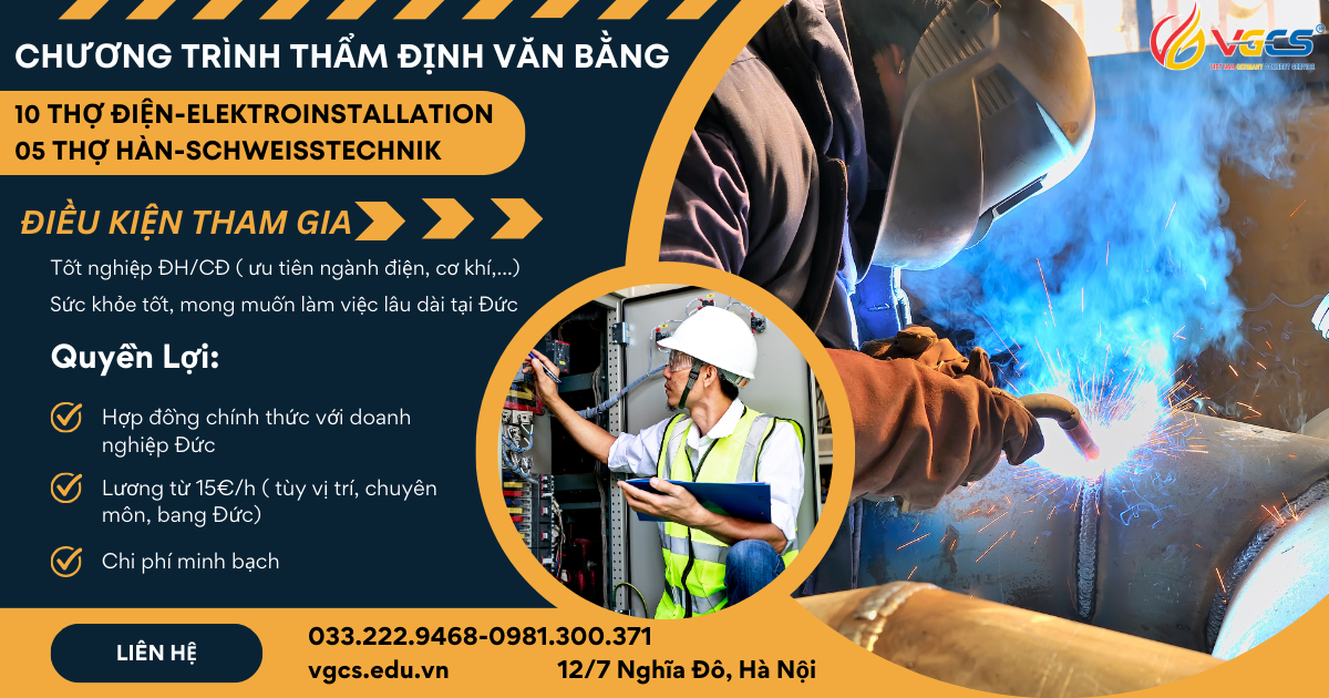TUYỂN 15 KỸ THUẬT VIÊN SANG ĐỨC – THẨM ĐỊNH VĂN BẰNG